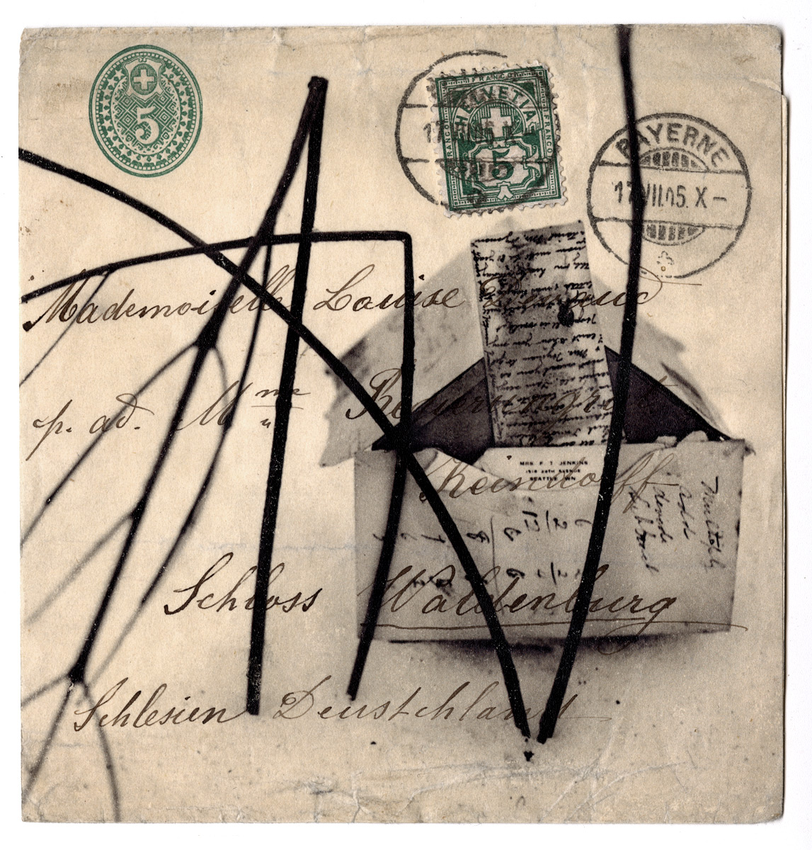 Wet transfer pigment print on vintage envelope
